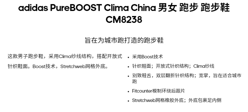阿迪達斯 PureBOOST Clima China 男女 跑步鞋 CM8238
