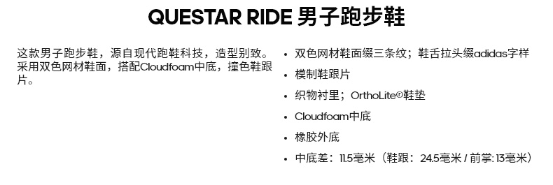 阿迪達斯adidas 官方 跑步 男子 QUESTAR RIDE 男子跑步鞋 DB1346