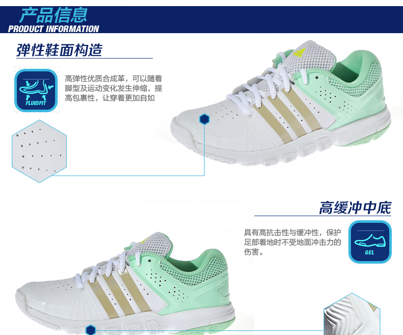 阿迪達(dá)斯女鞋adidas女子多功能室內(nèi)羽毛球鞋運(yùn)動鞋 B22955