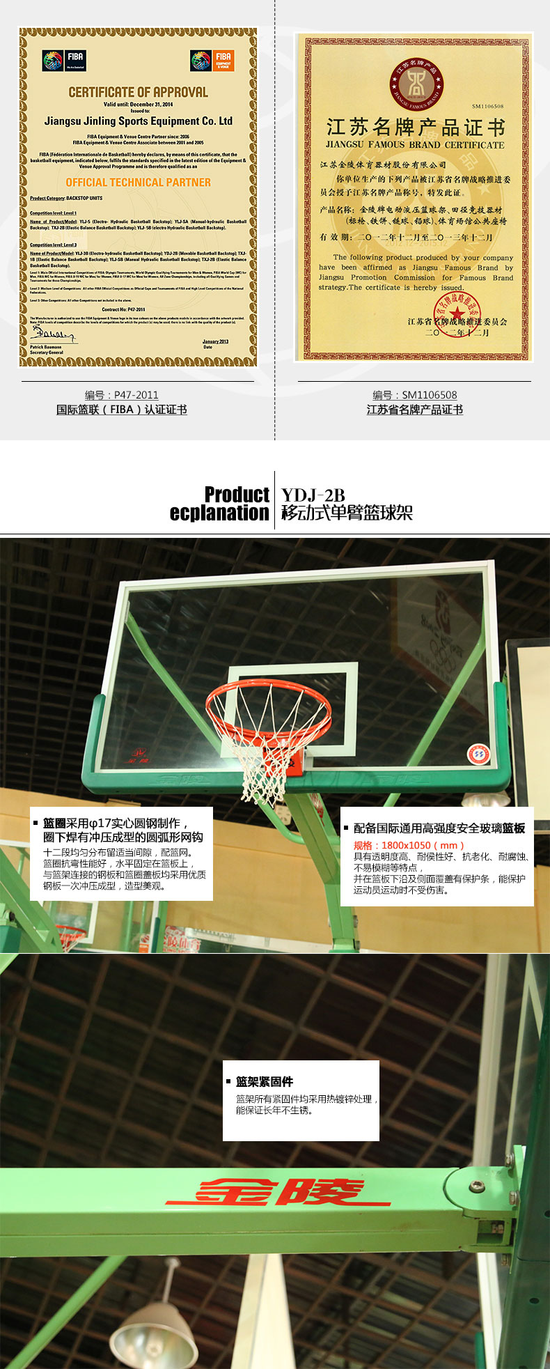 金陵籃球架 YDJ-2B室外移動單臂籃球架