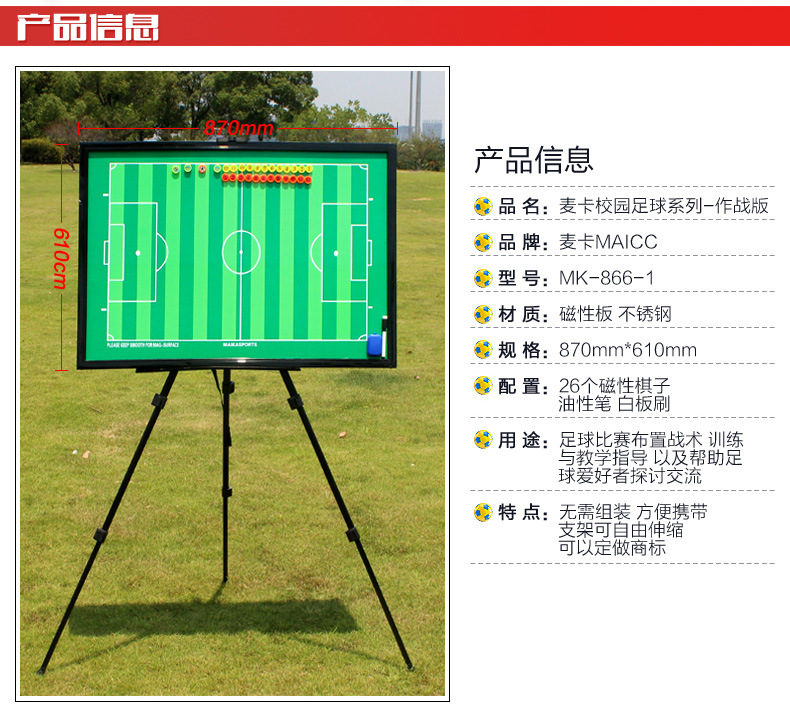 麥卡大號支架式戰(zhàn)術(shù)板866-1 專業(yè)支架式足球比賽戰(zhàn)術(shù)板大號足球?qū)崙?zhàn)磁性教練示教板戰(zhàn)術(shù)指揮板