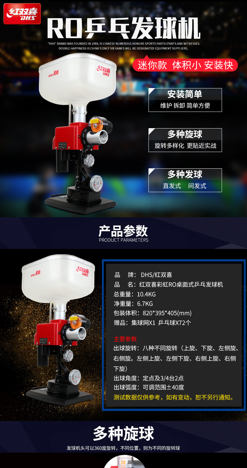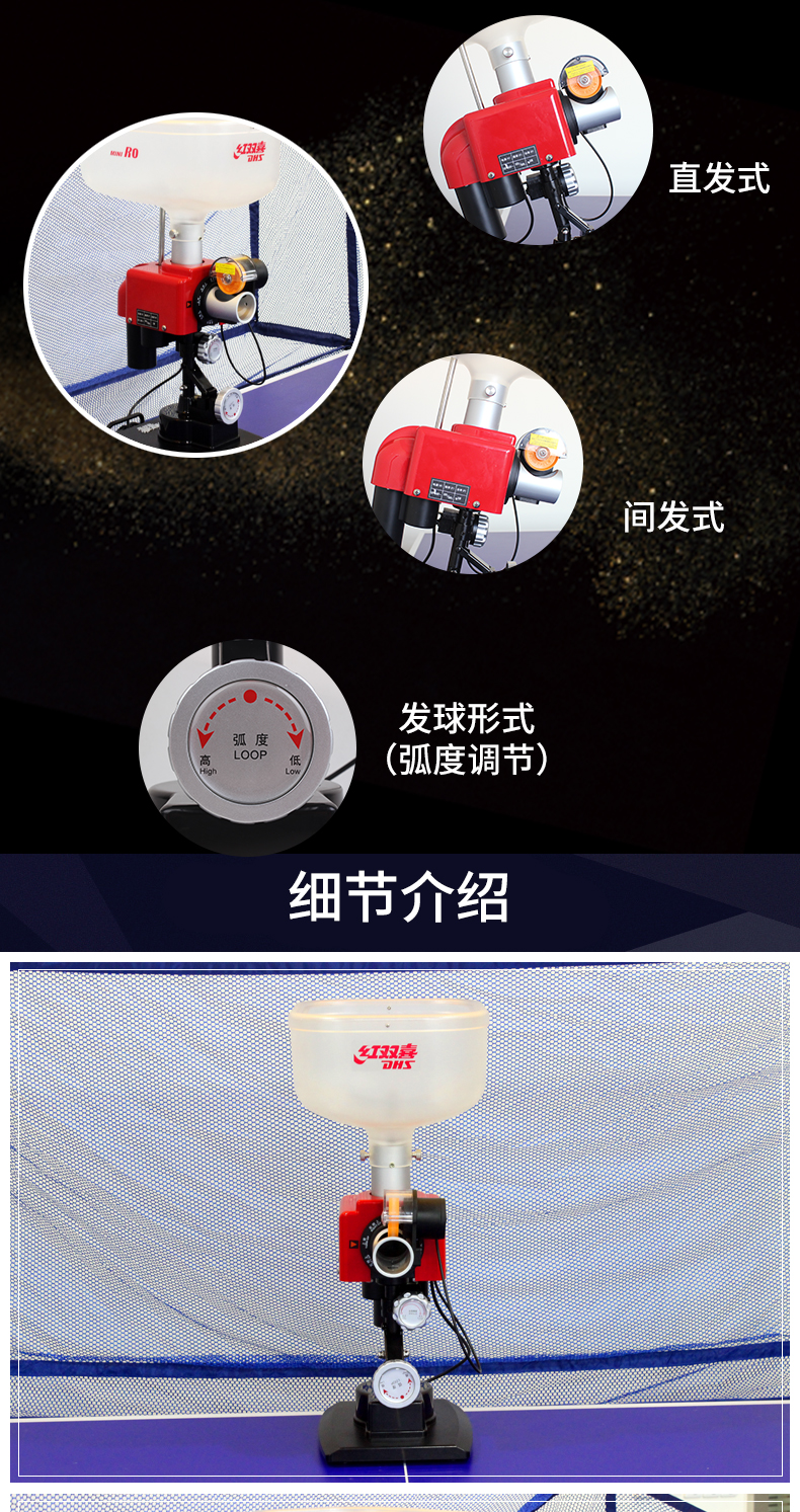 紅雙喜(DHS) R0桌面式訓(xùn)練乒乓球發(fā)球機