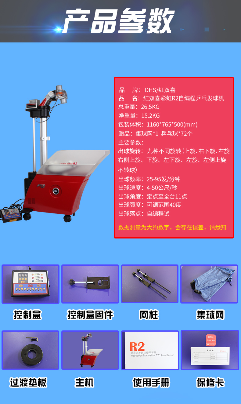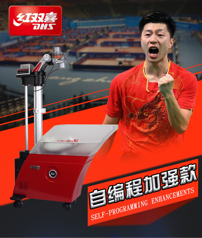 紅雙喜(DHS) R2自編程落地式專業(yè)乒乓球發(fā)球機(jī)