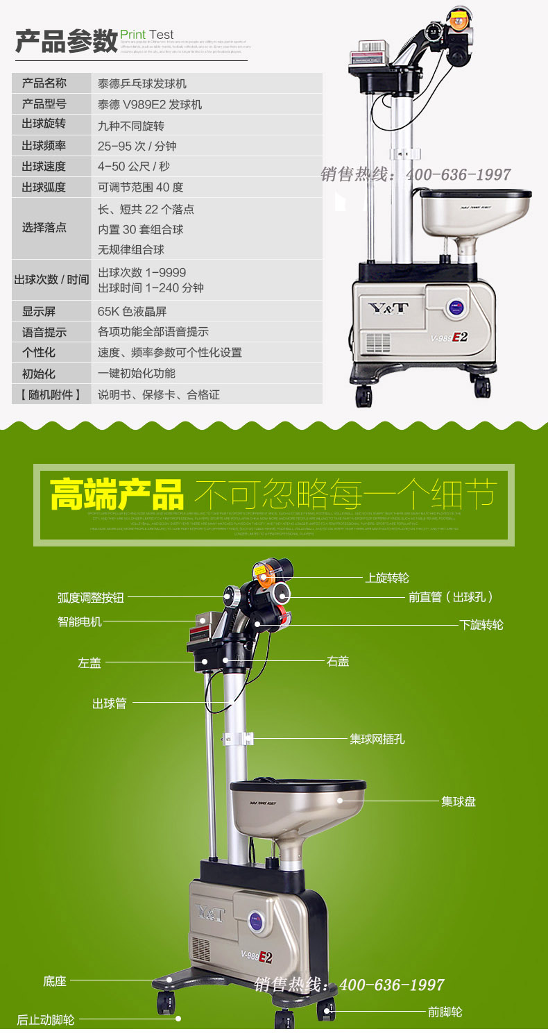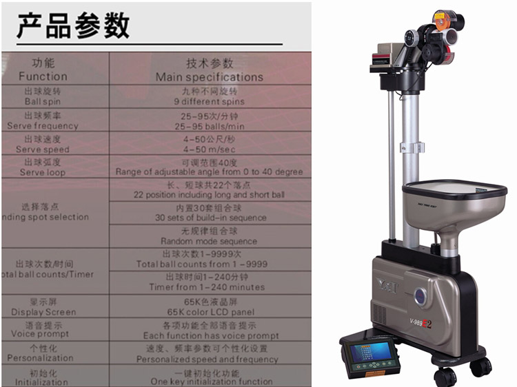 泰德V-988乒乓落地式訓(xùn)練專用智能乒乓發(fā)球機(jī)